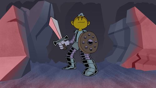 I wanted the backgrounds to reflect the difference between the Knight’s imagination and reality. For most of the animation, the color palette of the backgrounds is more saturated with greater contrast while the final background’s color palette is a bit more muted.
